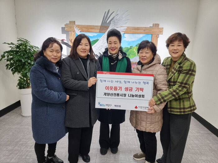 계양산전통시장 나눔여성회는 매년 지속적인 기부를 통해 어려운 상황에 처한 이웃들에게 희망을 전하며, 아름다운 나눔 활동을 이어가고 있다. 이번에 전달된 성금은 지역 내 취약계층을 위해 사용될 예정이다.