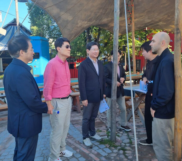 이 시장 일행이 7일 방문한 ‘홀쯔막트 25’는 베를린 슈프레 강변에 있는 지역으로 베를린 장벽 붕괴 후 공터였던 공간을 시민들이 창의성을 발휘해 문화·상업·녹지가 함께 하는 복합지구로 재개발한 곳이다.