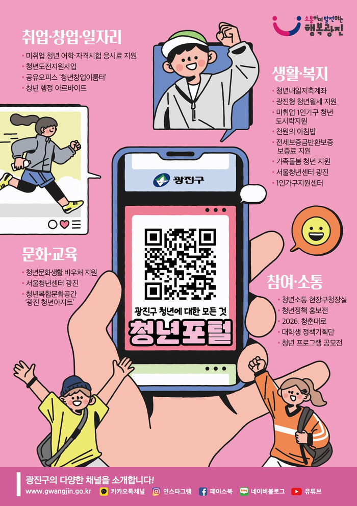 [시민일보 = 여영준 기자] 광진구(구청장 김경호)는 청년정책 정보 접근성을 높이기 위해 ‘광진구 청년포털’을 운영하며 다양한 청년 지원사업 정보를 한곳에서 제공하고 있다고 밝혔다.