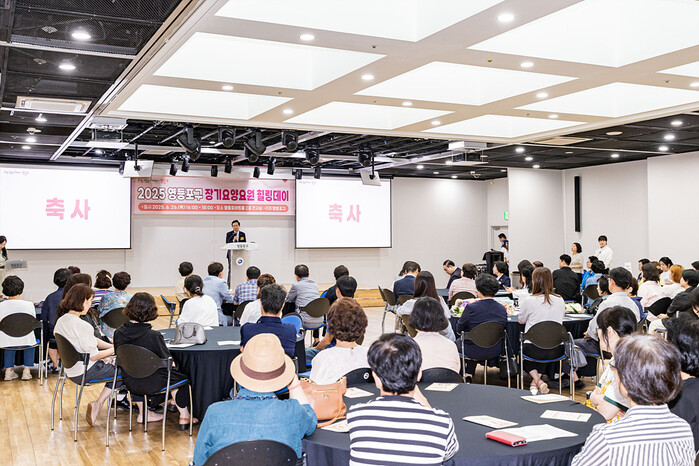 영등포구가 최근 영등포아트홀 전시실에서 2025년 장기요양요원 힐링 데이를 진행했다. 사진은 행사에 참석한 최호권 구청장이 인사말을 하고 있는 모습. (사진=영등포구청 제공)
