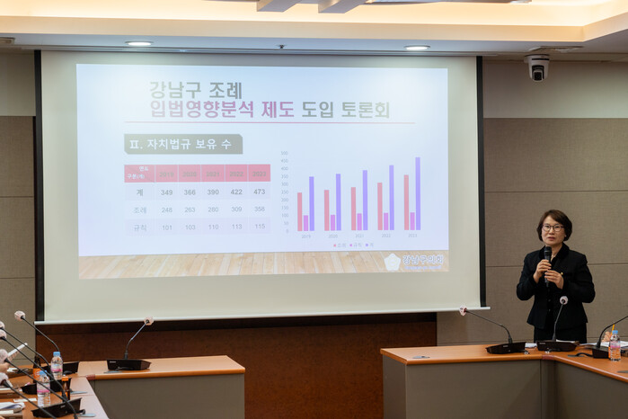 [시민일보 = 이대우 기자] 노애자 서울 강남구의회 의원의 주관으로 최근 강남구의회 6층 열린회의실에서 ‘조례 입법영향분석 제도 도입 토론회’가 열렸다.