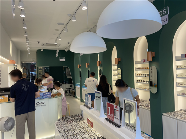 내부는 진열대에 따라 코너별로 “정찰제존”, “콘택트렌즈 존” “스포츠존", ”하우스브랜드존”, “명품안경존”, “키즈존”, “양안시시력검사실”, ”상담코너” 등으로 구분 구성하여 고객들이 쉽게 접근할 수 있도록 인테리어 되었으며, 코너별 상담코너를 마련해자신의 시력검사기록이나 구매물품 등을 언제든지 열람하면서 상담을 받을 수 있다.
