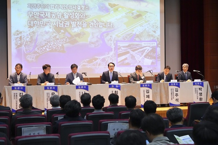 [광주=정찬남 기자] 광주광역시와 전라남도, 국방부, 시·도 지방시대위원회는 광주연구원, 전남연구원과 함께 24일 무안군 초당대학교 국제회의실에서 ‘광주 민간·군공항 이전 소음대책 및 지원방안’에 대해 토론회를 개최했다.