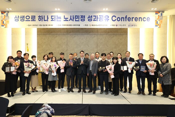 [화성=송윤근 기자] 경기 화성시노사민정협의회(이하 협의회)가 2일 푸르미르 호텔에서 ‘상생으로 하나되는 노사민정 성과공유 콘퍼런스’를 성황리에 개최했다.