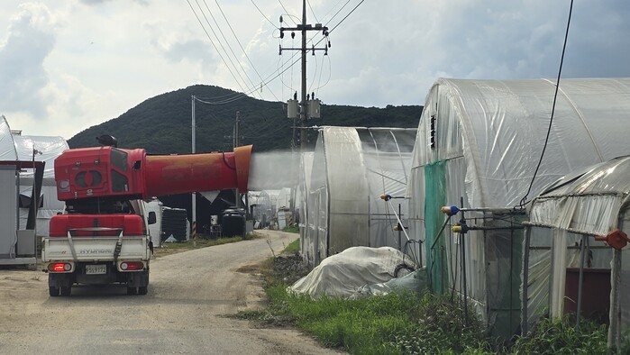 시설하우스 내부는 농가에서 자체 방제하고 주변 해충 서식지는 농업기술센터에서 방제 차량을 이용해 동시에 방제하는 민·관 합동 방식으로 이달 말에 2차, 오는 8월 초에 3차 방제를 계획하고 있다.