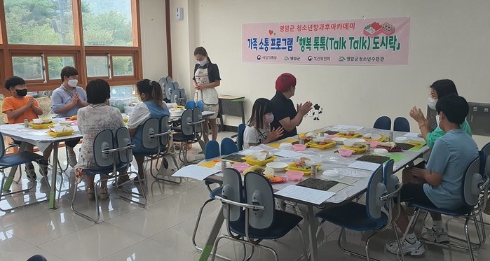 | ▲ 영암군청소년수련관 방과후아카데미, 지난 23일 방과후아카데미 이용 청소년과 학부모 대상 가족 소통 프로그램 “행복 톡톡(Talk Talk) 도시락” 프로그램 운영 / 사진=영암군 제공 |