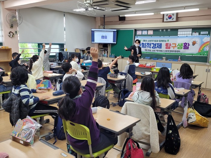 | ▲ 초등학생 대상 찾아가는 사회적경제 교육 운영 모습. (사진제공=성동구청) |