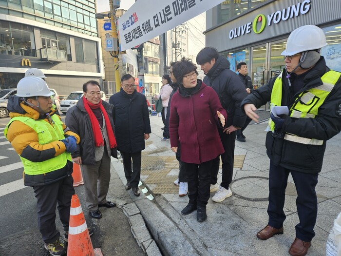 [시민일보 = 홍덕표 기자] 서울 강북구의회(의장 최치효) 유인애 부의장(번1·2동, 수유2·3동)이 최근 수유역 사거리 대각선 교차로에 바닥신호등 250여개가 설치되는 현장을 찾아 점검했다.