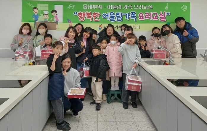 | ▲ 해남군 가족어울림센터 요리교실 참여가족 기념촬영 / 해남군 제공 |