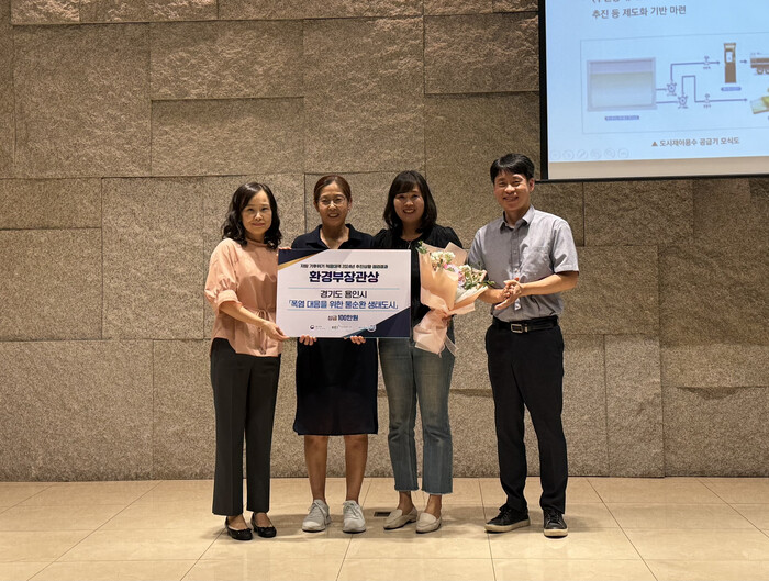 용인특례시의 ‘폭염 대응을 위한 물순환 생태도시’는 도시 열섬현상 심화에 대응해 하수처리수를 재이용하고 도로노면을 자동 세척하는 사업이다. 이를 위해 시는 도시재이용수 공급기를 설치하고, 도로노면 자동세척 시스템인 ‘클린로드’를 마련해 폭염 저감 효과를 체계적으로 높였다는 평가를 받았다.