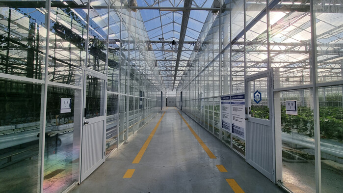 ㈜그린씨에스는 네덜란드 기술로 구축된 반밀폐형 온실을 활용, 토마토를 재배하는 실증 연구를 통해 한국형 반밀폐형 온실 개발을 목표로 한 기술 개발에 집중하고 있다.