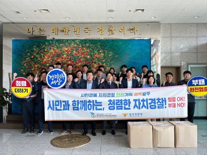 [광주=정찬남 기자] 광주자치경찰위원회는 6일 광주경찰청 로비에서 청렴도 향상 의지를 공고히 하고 반부패·청렴 문화 확산을 위한 청렴 동행 캠페인을 실시했다.