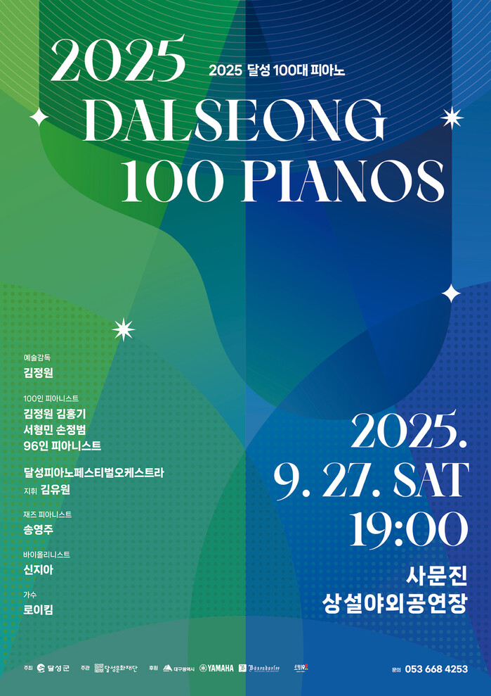 ‘달성 100대 피아노’는 1900년 우리나라 최초의 피아노가 사문진 나루터를 통해 들어온 역사적 사실을 기념하며 시작된 국내 대표 음악 축제다. 클래식, 재즈, 뉴에이지, 대중음악 등 다양한 장르를 아우르는 프로그램과 부대 행사로 풍성한 볼거리를 제공한다. 올해 역시 100대의 피아노가 무대에 오르는 대규모 공연으로 관객들에게 장대한 음악적 감동을 선사할 예정이다.