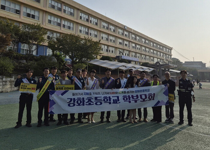 캠페인에는 교육장 등 기관장과 녹색어머니회, 강화군청.교육지원청, 모범운전자회, 자원봉사센터, 갑룡초, 강화초, 합일초 교사 등 60여 명이 참여, 위해 요소를 점검하고 안전한 등굣길 조성을 위한 홍보를 진행했다.