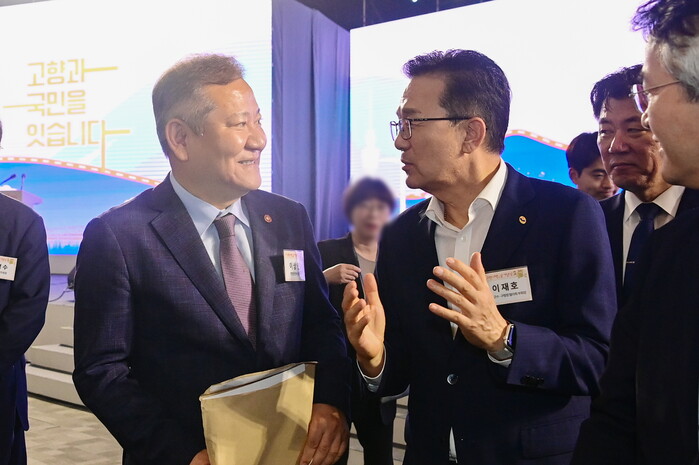 [인천=문찬식 기자] 이재호 인천 연수구청장이 최근 일산 킨텍스 제2전시장에서 열린 행정안전부 주관 제1회 고향사랑의 날 기념식에서 이상민 행안부 장관에게 정당현수막 관련법 개정을 다시 한번 건의했다.