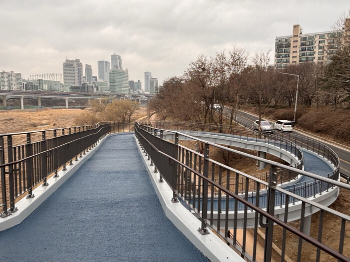 10일 구에 따르면 해당 교량은 구가 서울시와 협의해 시비 10억원을 확보해 조성한 것으로, 어린이와 노약자도 안전하게 이용할 수 있도록 완만한 기울기의 램프 형태로 설계됐다.