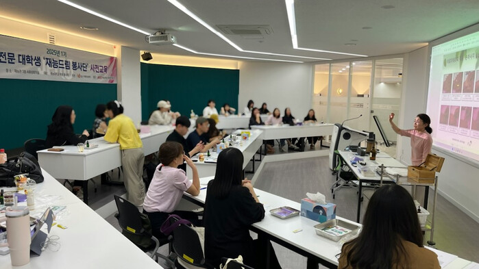 봉사단은 본격 활동에 앞서 치매에 대한 이해를 높이고 봉사활동에 필요한 지식과 태도를 함께 익히기 위해 지난 23일 오후 2~5시 재능대에서 사전교육을 받았다.