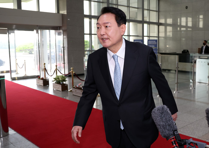 윤 대통령은 이날 오전 용산 대통령실 청사 출근길에 기자들과 만난 자리에서 “제가 하는 일은 국민을 위해 하는 일이니 오로지 국민만 생각하고 열심히 해야 한다는 그 마음만 가지고 있다”면서 이같이 밝혔다.