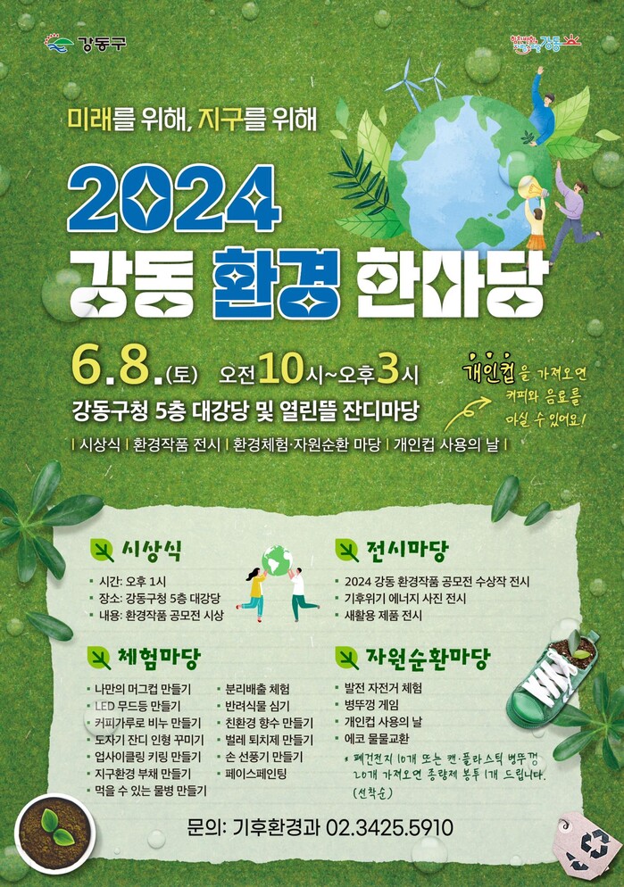 ‘2024 강동 환경 한마당’과 관련해 자세한 사항은 강동구청 기후환경과로 문의하면 된다.