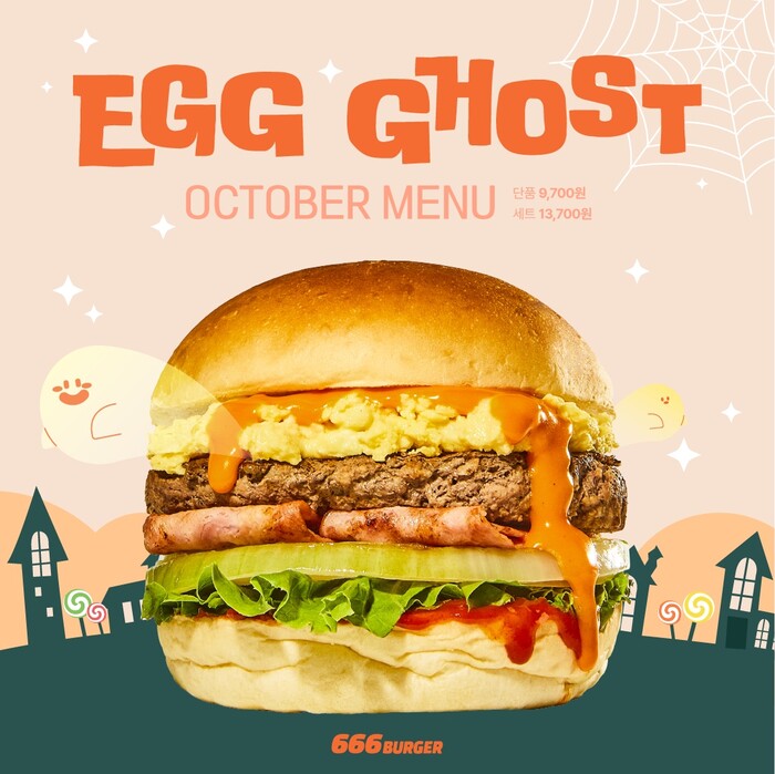 ‘에그고스트’는 으깨진 에그포테이토 토핑을 풍성하게 담아 볼륨감을 더한 수제버거다. 몽글몽글한 식감의 에그포테이토 토핑과 666버거의 시그니처 소고기 토핑이 어우러져 입 안 가득 색다른 풍미를 선사하며 구운 양파와 베이컨, 로메인으로 식감을 더했다.