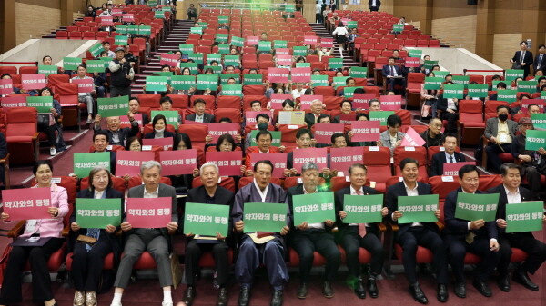 사회연대노동조합연맹 주최로 지난 4일 오후 서울 여의도 국회의원회관에서 열린 '약자와의 동행 연대협약식'에는 이충재 사회연대연맹노조 위원장을 비롯해 이정식 고용노동부 장관, 김동명 한국노총 위원장, 김호일 대한노인회장, 더불어민주당 김영배, 김경협 의원, 국민의힘 김형동 의원, SAKA 윤재환 총재 등이 참석해 약자와의 동행 피켓을 드는 퍼포먼스에 함께 하는 등 더불어 함께 하는 사회를 만드는 뜻깊은 장에 함께 했다.