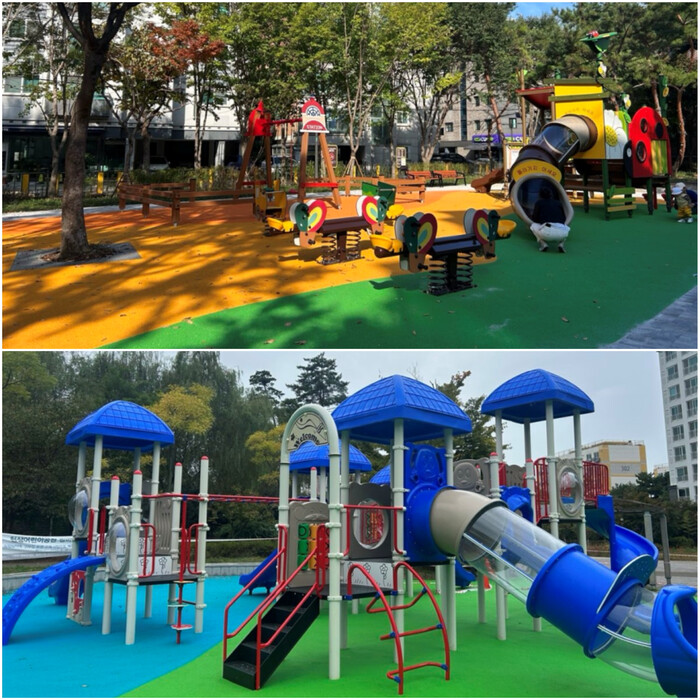 새롭게 조성된 놀이터는 기존의 단조롭고 낙후된 놀이터에서 벗어나 개성 넘치는 다양한 놀이기구로 교체하고, 노후시설을 보수하는 등 재미있고 안전한 놀이 환경으로 조성됐다.