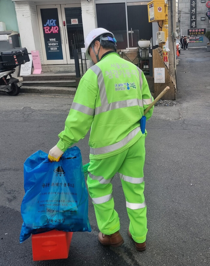 '강북구 365청결기동대'는 2인 1조로 구성돼 환경공무관 근무 공백 시간대인 평일 오후 4~10시, 주말 오후 3~10시에 지역내 이면도로와 골목 등 상업시설 밀집지역을 집중적으로 순찰한다.