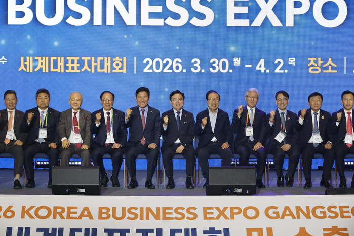 강서구가 최근 ‘한국 비즈니스 엑스포 강서’ 폐회식을 진행했다. ‘엑스포 강서’에서 총 1억4900만 달러(약 2246억원) 규모의 수출 업무협약 115건이 체결되는 성과를 거뒀다. 사진은 진교훈 구청장(왼쪽 여섯 번째)이 폐회식에서 박종범 세계한인경제무역협회장(왼쪽 다섯 번째) 및 내빈들과 기념촬영을 하는 모습. (사진=강서구청 제공)