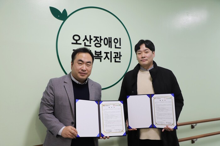 경기 오산장애인종합복지관은 4일 동탄에 위치한 웰컴발달운동센터와 장애 아동·청소년을 위한 업무협약을 체결했다. 두 기관은 오산시 거주 장애 아동·청소년 대상 장애 유형별 특성과 기능수준을 고려한 맞춤형 신체활동 처방을 계획할 수 있는 종합평가 ‘PAPS-D검사’를 실시해 신체·인지기능 향상을 지원할 계획이다. 사진은 관계자들이 기념촬영을 하고 있는 모습. (사진=오산시청 제공)