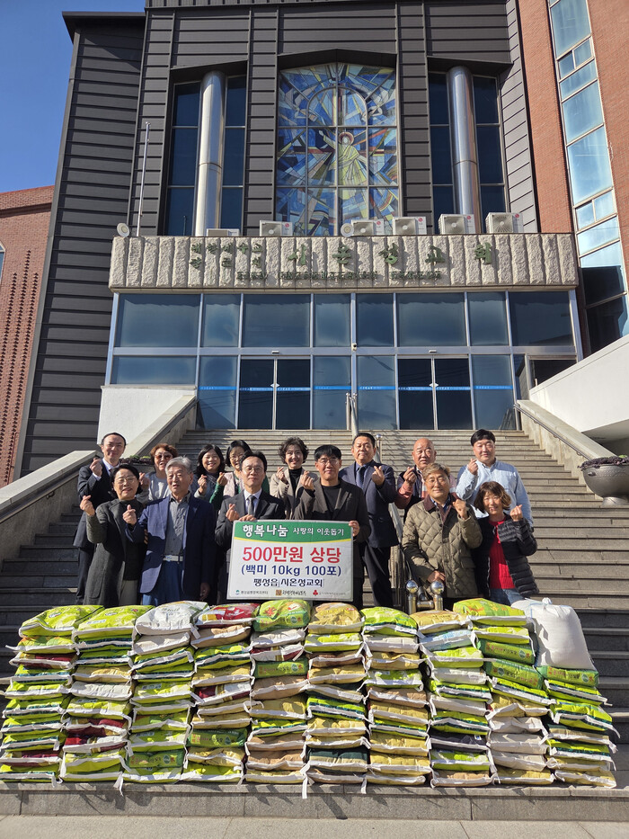 이에 이근영 팽성읍장은 “단지 쌀 100포라는 수량을 넘어, 어려운 이웃들과 함께하고 있다는 마음을 나누는 계기가 되었다”며, “시온성교회의 나눔과 이웃사랑에 깊이 감사드린다”라고 말했다.