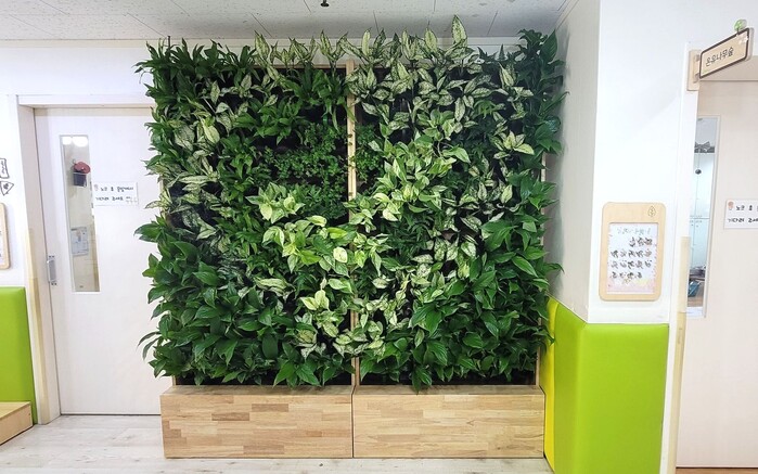 | ▲ 어린이집에 설치된 식물 공기 정화 시스템 모습. (사진=은평구청 제공) |