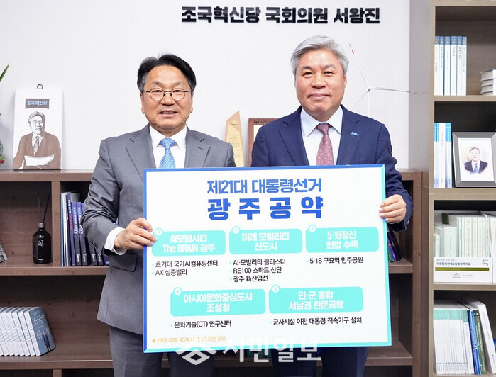 서왕진 조국혁신당 최고위원은 “인공지능(AI) 모델시티, 5·18구묘역 민주공원 등 광주가 대선공약을 선도적으로 잘 만든 것 같다”며 “지역발전에 크게 도움이 될 수 있도록 함께 하겠다”고 말했다.