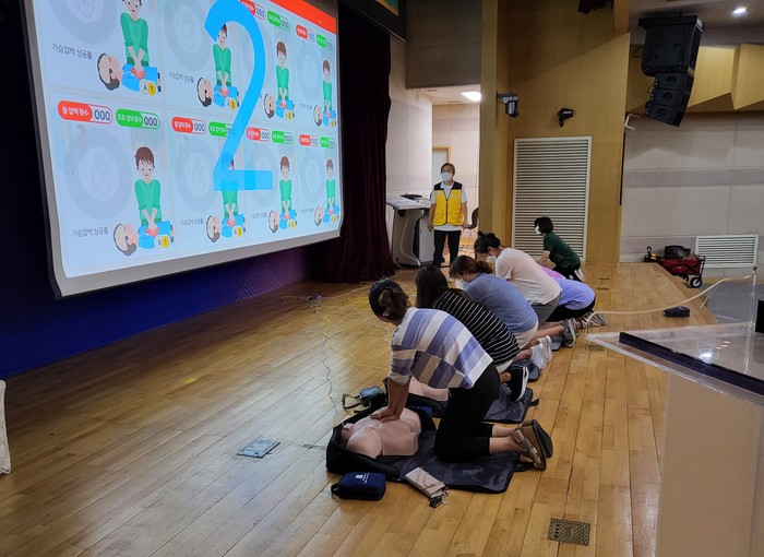 지난 27~28일 진행된 이번 교육은 한국보육진흥원과 행정안전부 지원으로 무료로 진행됐으며 종사자들에 대해 심폐소생술, 자동심장충격기(AED) 사용법, 기도 폐쇄시 대처 방법, 응급처치 상황 AR·VR 체험 등으로 구성돼 어린이 사고 발생시 실질적으로 대처할 수 있는 능력 향상을 위해 진행됐다.