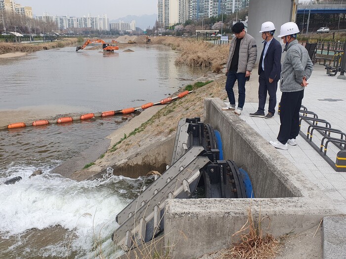 가배수로 등 배수처리 기능이 확보돼 있는지, 하류지역 토사유출 방지를 위해 충분한 침사지가 설치돼 있는지, 하천시설에 결함은 없는지 등을 살피고 빗물 펌프장, 수문 등 수방시설물의 시험가동을 실시했다.
