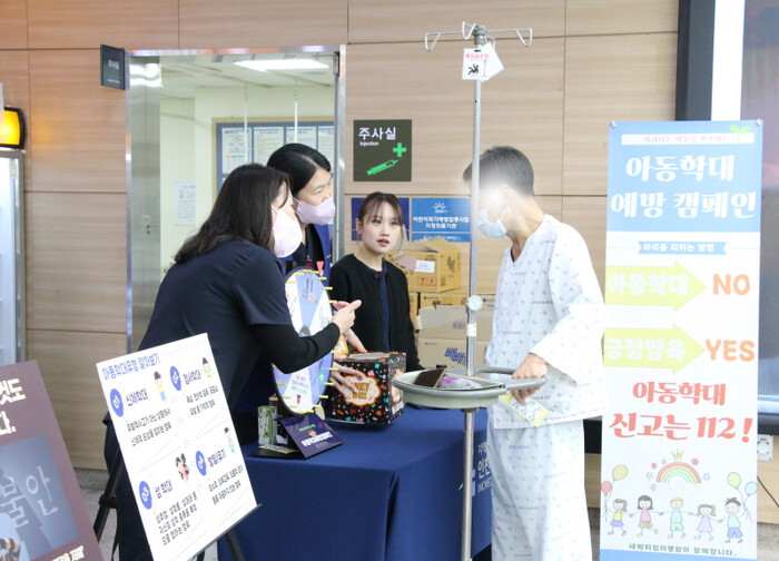 또 아동학대 유형, 가정폭력 노출의 위험성 등을 담은 카드 뉴스 전시를 통해 내원객들이 학대의 심각성을 이해하고 조기 신고의 중요성을 되새길 수 있는 기회를 제공했다. 의료원은 캠페인과 더불어 전 직원 대상 아동학대 예방 교육도 두 차례 실시한다.