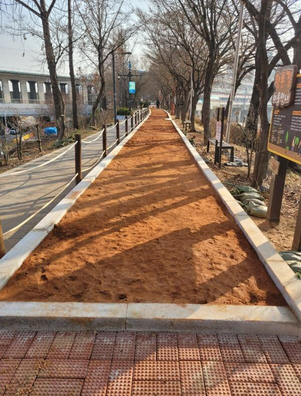 구는 2023년 10월부터 신정교 인근 1곳, 고척교 인근 2곳 총 3곳의 황톳길을 안양천에 조성해 운영 중이다.