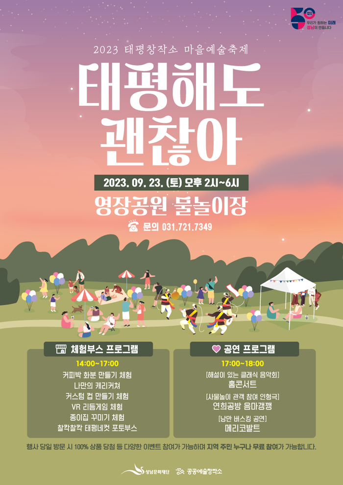 성남문화재단(대표이사 서정림)이 운영하는 태평공공예술창작소와 위례 스토리박스에서는 주민들과 함께하는 마을 축제를 개최한다.