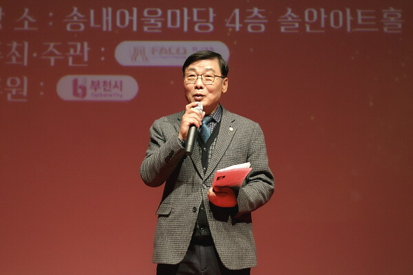 | ▲ 김병전 의장이 17일 송내어울마당 솔안아트홀에서 열린 '2024. 송년예술제 및 부천예술상 시상식'에 참석해 인사말을 하고 있다. (사진제공=부천시의회) |