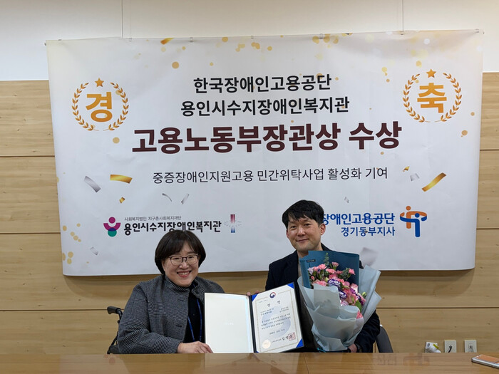 이러한 성과를 바탕으로 용인시수지장애인복지관은 중증장애인 고용 확대와 직업재활 활성화에 기여한 공로를 인정받아, 중증장애인지원고용 민간위탁사업 우수위탁기관 중 전국 최상위 기관으로 선정되며 고용노동부 장관상을 수상했다.