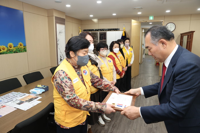 전달식은 강신만 의장을 비롯해 임승현 대한적십자봉사회 도봉지구협의회 회장과 표창수여자 6명 등 총 11명의 관계자가 참석한 가운데 진행됐다.