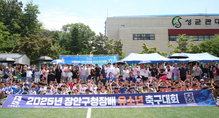 경기 수원시 장안구가 지난 14~15일 양일에 걸쳐 2025년 장안구청장배 체육대회를 개최했다. 14일에는 만석공원 게이트볼장에서 게이트볼 대회가 진행됐으며, 15일에는 족구대회와 유소년 축구대회가 각각 만석공원 족구장과 성균관대학교 축구장에서 열렸다. 사진은 대회에 참석한 이상수 구청장(가운데)이 참석자들과 기념촬영을 하고 있는 모습. (사진=장안구청 제공)