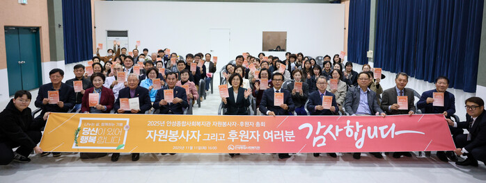 [안성=오왕석 기자] 지난 11일 안성종합사회복지관(관장 박희열)은 복지관 3층 대강당에서 ‘2025년 자원봉사자·후원자 총회’를 성황리에 개최하였다. 이번 총회에는 자원봉사자와 후원자, 유관기관 및 단체 관계자 등 200여 명이 참석하여 지역사회 복지 증진을 위해 헌신한 이들의 노고를 함께 축하하고 감사의 마음을 나누는 뜻깊은 시간을 가졌다.