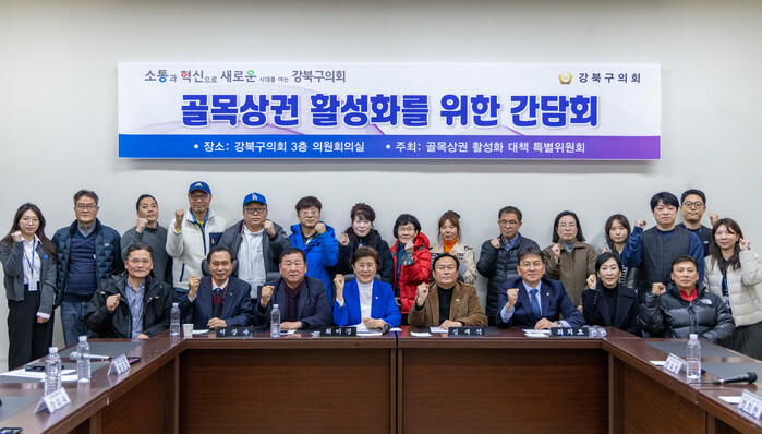 [시민일보 = 문민호 기자] 서울 강북구의회 ‘골목상권 활성화 대책 특별위원회’가 최근 의회 3층 의원회의실에서 간담회를 열고, 강북구 상권 활성화에 대해 논의했다.