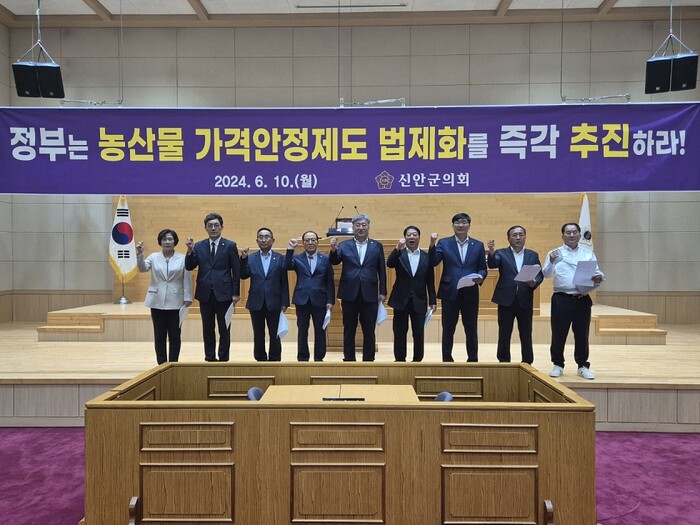 신안군의회는 결의문을 통해 최근 농산물가격의 불안정으로 농가가 심각한 경영 위기에 처해있다며, 농업의 지속가능성 확보와 식량안보 강화를 위한 ‘농산물 가격안정제도 법제화’를 주장했다.