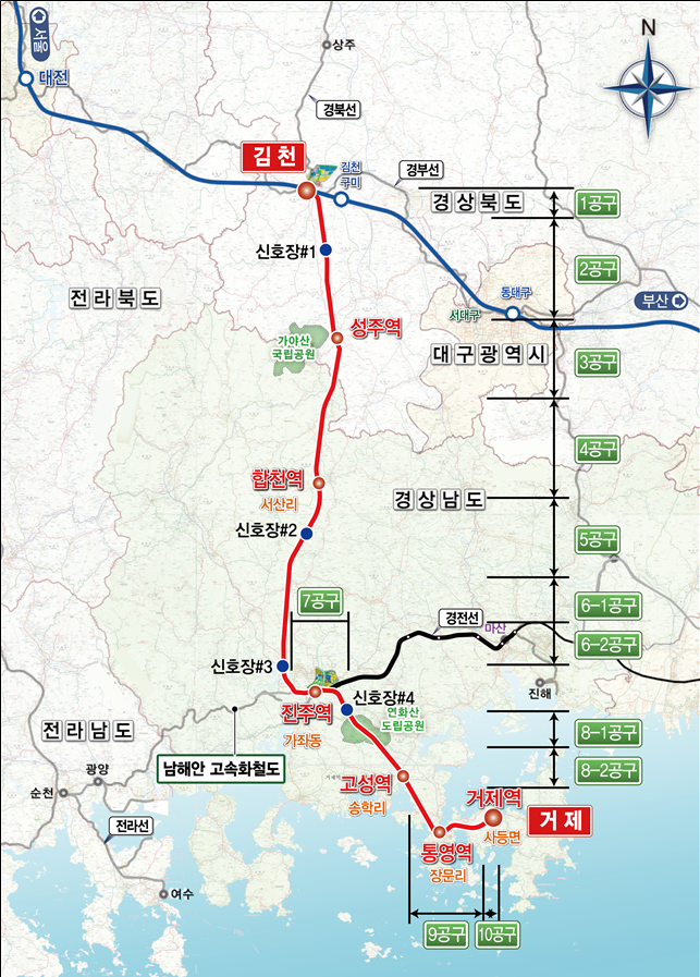 현재 1~9공구는 실시설계가 마무리 단계며, 마지막 10공구인 거제 구간은 지난 6월 기본설계를 완료하고 올해 기술형 입찰방식(실시설계+시공)으로 발주될 예정이다.