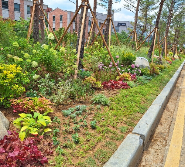 또한, 매력 정원의 녹지대 단차 해소를 위해 조경석을 쌓고, 차량 운전자의 시야 높이를 고려하는 등 단순한 식재를 넘어 주변 경관과 조화를 이루는 정원형 가로녹지를 구현했다.