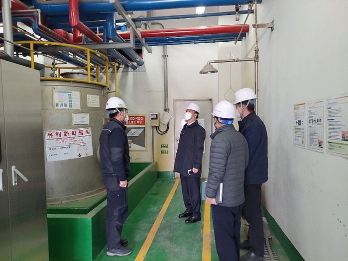 경기 김포도시관리공사는 최근 양일간 해빙기 안전사고를 대비해 중대재해처벌법 시행 이후 첫 번째 현장행정을 실시해, 자원화센터·재활용수집소 등 주요 위험시설의 운영상태 및 시설물 유지관리 상태를 점검했다. 사진은 자원화센터를 현장 점검하는 모습. (사진제공=김포도시관리공사)
