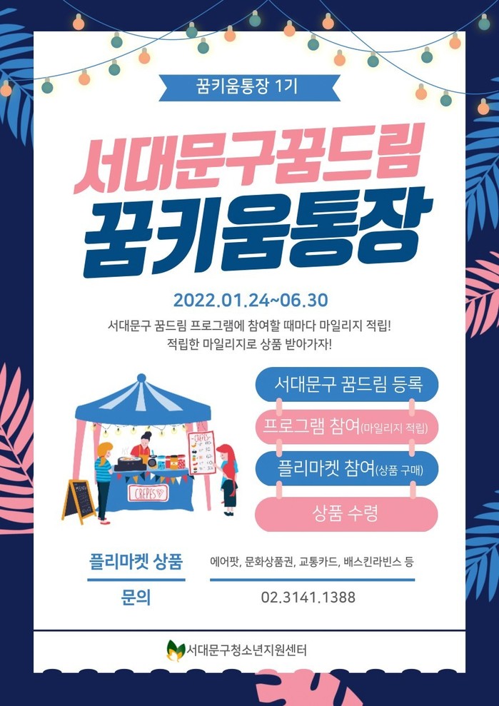 [시민일보 = 홍덕표 기자] 서울 서대문구(구청장 문석진)는 학교 밖 청소년들 위해 '꿈키움 통장'을 발행하고 여기에 적립되는 마일리지를 활용할 수 있도록 플리마켓을 운영하고 있다고 14일 밝혔다.