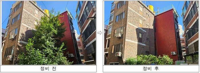 | ▲ 주택가 내 위험수목 정비 전후 모습. (사진=구로구청 제공) |