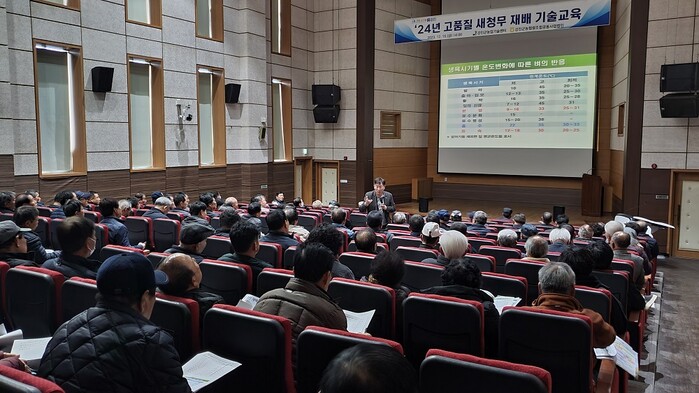 | ▲ 강진군, 지난 15일 농업기술센터 대강당에서 벼 재배 농업인 100여 명 대상 새청무쌀 품질 향상 재배기술 교육 / 강진군 제공 |